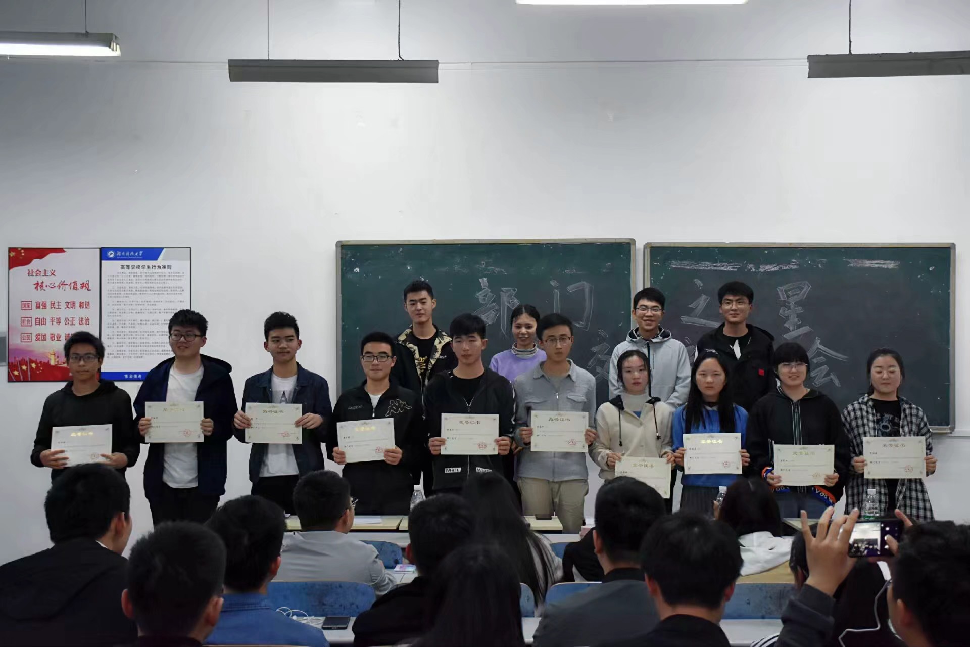本次大会以问答为主体展开,在10位部门之星依次介绍自己和部门的工作及状况后,主席团和其他部门委员对部门之星进行提问。问题涉及部门之星对工作的理解、建议以及对主席团工作的建议,意在让各学生会成员互相交流经验,提高部门工作效率及质量。学生会各成员在此拉锯式问答中良方共享、不足互改、共同进步。我院学生会成员上下齐心致力于打造一个更好的服务于学院和学生的学生会。学生会主席张煜翀在总结时说道:“一时间的意气风发抵不过长时间的摸爬滚打,希望大家在面对挑战时不忘初心,将学生会变得更好更强。”大会最后,四位主席团成员为部门之星颁奖。