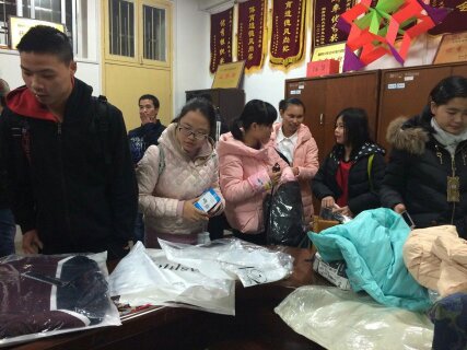 发放当日,我院15级20余名特困生相聚物理楼办公室,我院分管学生资助工作的张华老师亲自为他们发放棉衣,并热心地为同学们挑选尺寸合适的衣服。整个发放活动同学们都积极配合,工作有序进行,人心和衣物带来的温暖注进了同学们的心窝,同学们的脸上都绽放出一朵朵灿烂的红花。在签字确认后,同学们还穿着新衣进行了拍照留念。最后,本次活动在师生们的满面笑容的合影下圆满落幕。