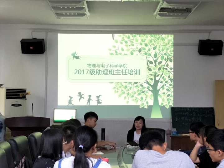 为使即将到来的新生开学报到工作有效地进行,9月5日14:25分,2017级助理班主任培训大会在物理楼二楼会议室成功召开。全体助理班主任与会,学工办孙婵老师、张华老师出席进行指导。