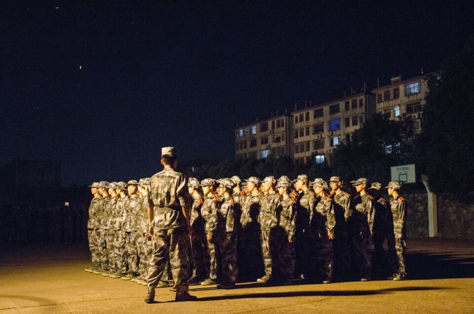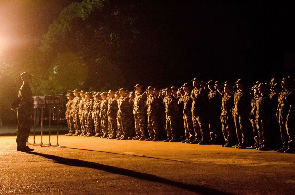 夜幕笼罩下,我院2017级全体受训学员庄严肃穆,迅速列队集合。“报告!四营三连集合完毕,请指示!”随后,党委副书记杜鑫面向全体2017级受训学员发表讲话。杜鑫副书记首先强调了军训的必要性和重要性,要求全体学员学习人民军队坚强意志和优良作风,锻炼吃苦耐劳精神、增强集体荣誉感;他希望同学们珍惜军训的机会,积极投身到军训中,不畏苦难。他向同学们提出了“七过硬”的要求,期望他们积极配合教官训练,圆满完成军训,以优异的成绩向党的十九大献礼。