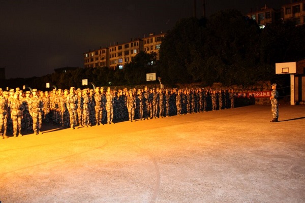 夜色苍茫,训练场却在灯光照射下亮如白昼,三百物电兵坚定地把军姿站得笔直,训练场里第一天便有了战场的肃杀,铁骨铮铮,气贯长虹,“沙场秋点兵”!