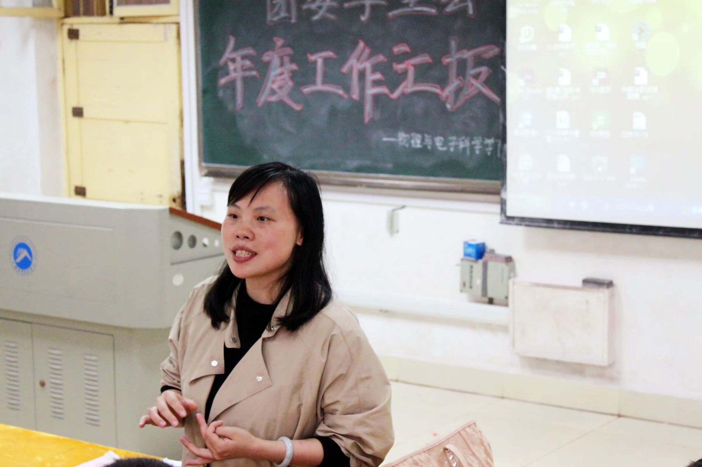 十五个部门依次上台以PPT演讲的形式就部门常规工作、部门特色、娱乐活动、反思总结等方面进行展示。各部门代表发言人有的幽默诙谐,有的认真严谨,都对部门工作进行了全方位的总结。其中,宣传部的杨博文同学绘声绘色地对宣传部的工作进行了汇报。学院新闻发布,网站建设,公众号维护,这些大家平时可能不会留意,但其背后的流程,需要几个部门的合作,大家也通过这次会汇报体会到一些部门从事幕后工作的辛苦。学习部的一句“大家好!我们是物电学院学习部,下面将进行一次课堂考勤……”让大家都感觉重新回到了课堂,并切身体会到了学习部建设良好学风的决心。当第十五个部门结束汇报后,主持人请出了一个新设的部门——权益部,权益部的委员强调了部门设立的意义以及该部门的主要工作目标。大会最后,孙婵老师作总结发言,她肯定了物电学院团委学生会这一年的工作,并表示工作中付出的是辛劳和汗水,收获的却是真情和感动,她殷切希望物电学院团委学生会的工作能越做越好,不负使命,勇往直前!