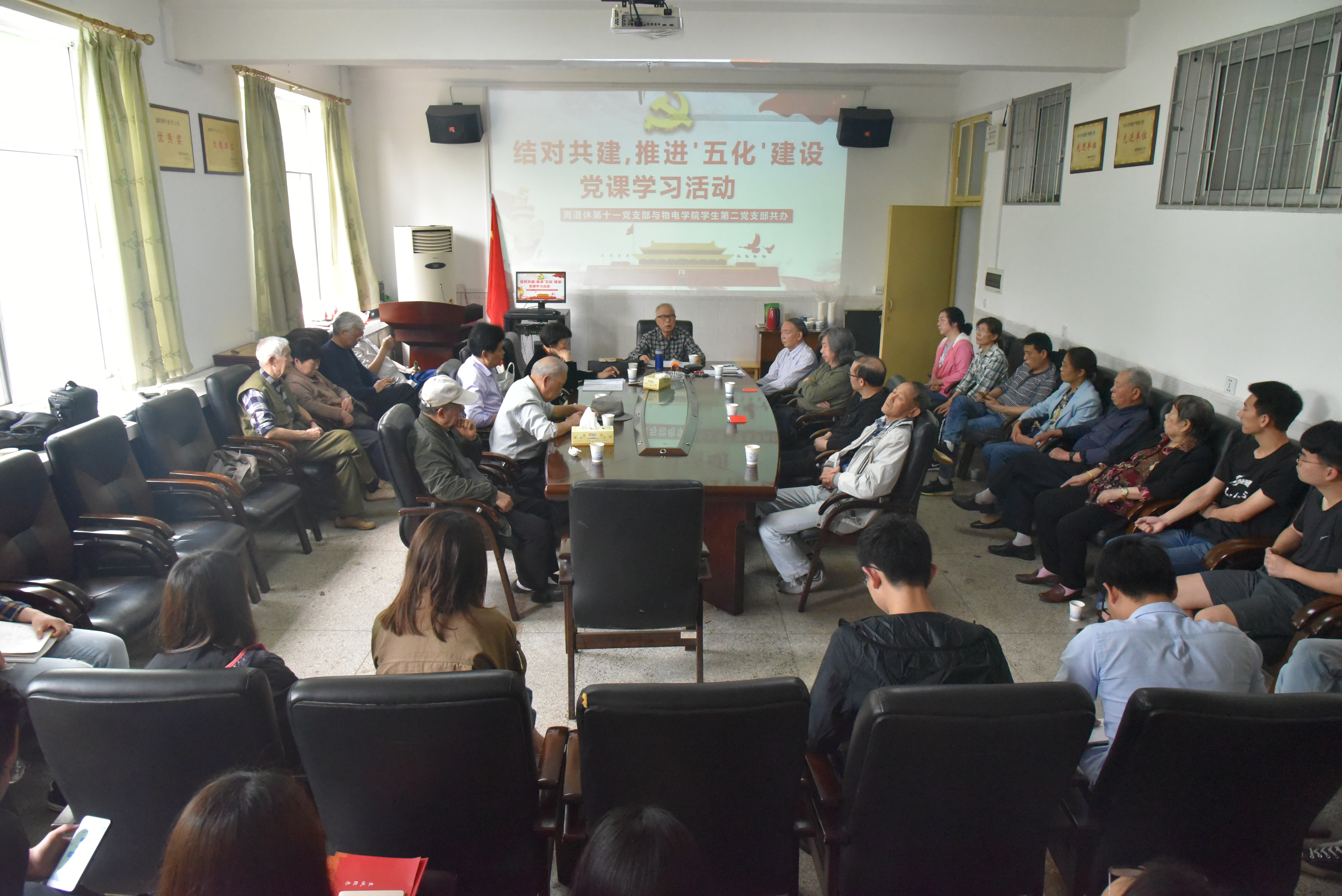 为切实加强基层党支部建设,贯彻落实党的十九大精神,4月25日上午9:00,湖南科技大学离退休处第十一党支部与物电学院学生第二党支部于物理楼会议室开展以“毛泽东读书”为主题的党课活动,结对共建活动由离退休处第十一党支部书记卢长吾主持。