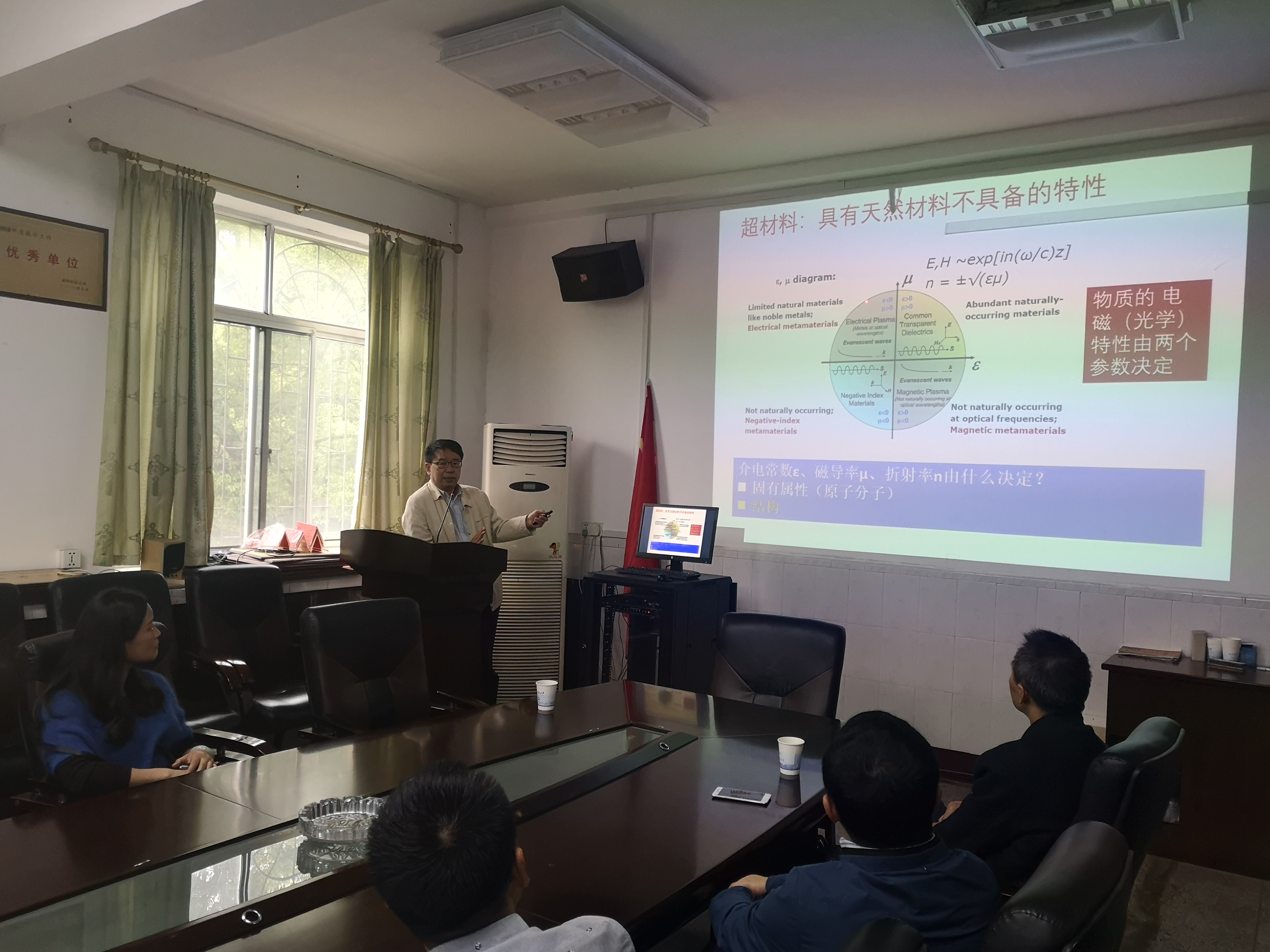 4月22日下午14:30,国家杰出青年科学基金获得者、国务院政府特殊津贴专家、湖南大学物理与微电子科学学院院长文双春来我院物理楼213会议室作关于结构与物质的学术报告。我院学术院长刘雪明,副院长刘云新,副院长詹杰以及部分教师和研究生参加此次报告会。
